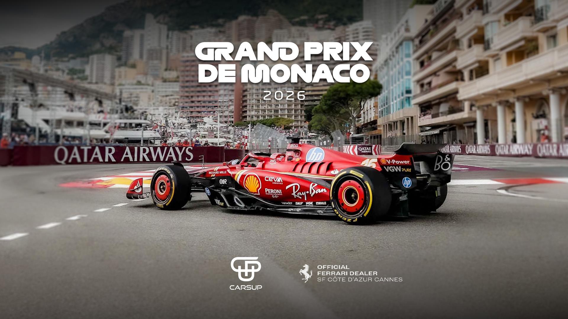 À l’occasion du Formula One Grand Prix de Monaco, Carsup s’associe à Ferrari SF Côtes d’Azur Cannes pour vous proposer deux expériences exclusives, imaginées pour vivre la F1 dans des conditions rares et privilégiées, au cœur de l’événement monégasque.