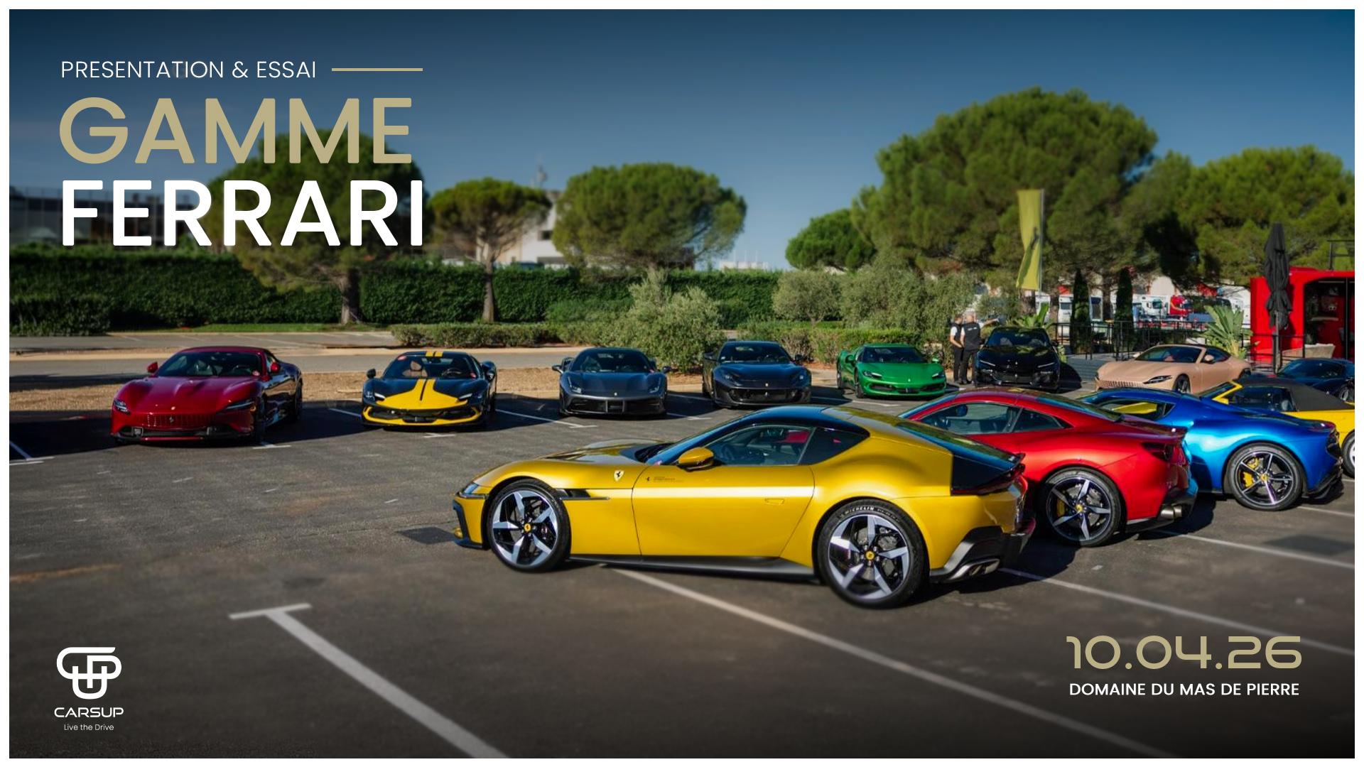 Carsup et Ferrari SF Côte d'Azur Cannes vous invitent à une expérience d'essais privée au Domaine du Mas de Pierre à Vence, le vendredi 10 avril de 10h à 17h.